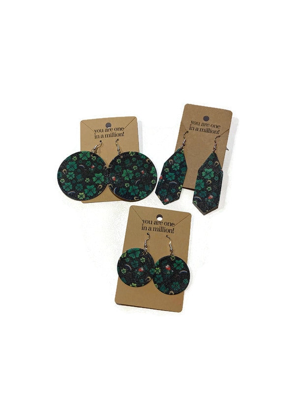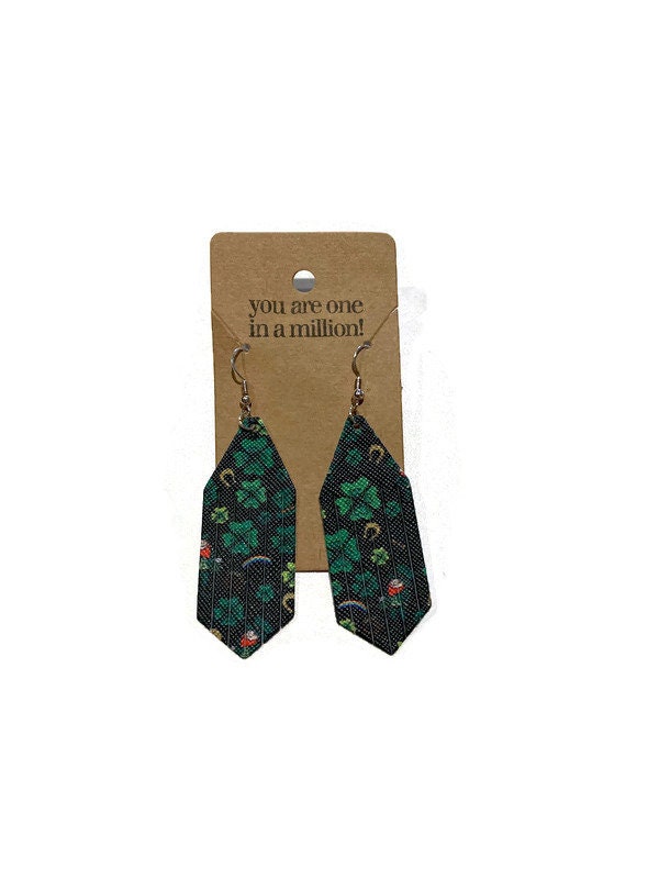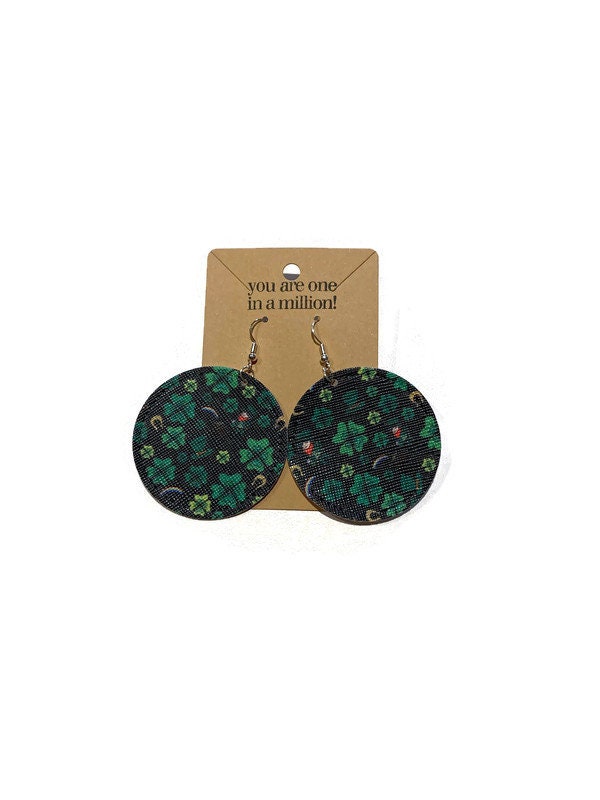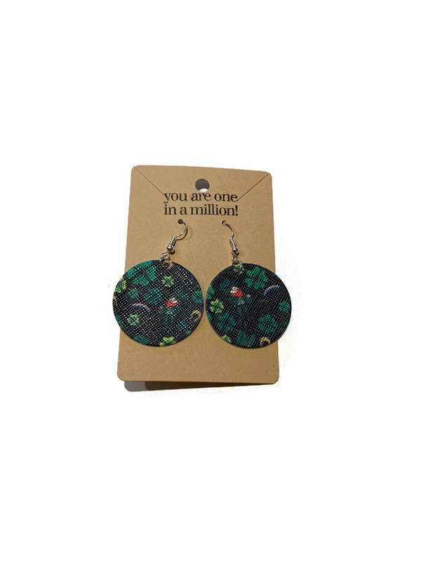 St. Patrick’s Day Faux Leather Earrings, Glitter Layers, Pot of Gold, Horseshoes, Green Clovers, Leprechaun Hat, St. Patty Parties Gifts