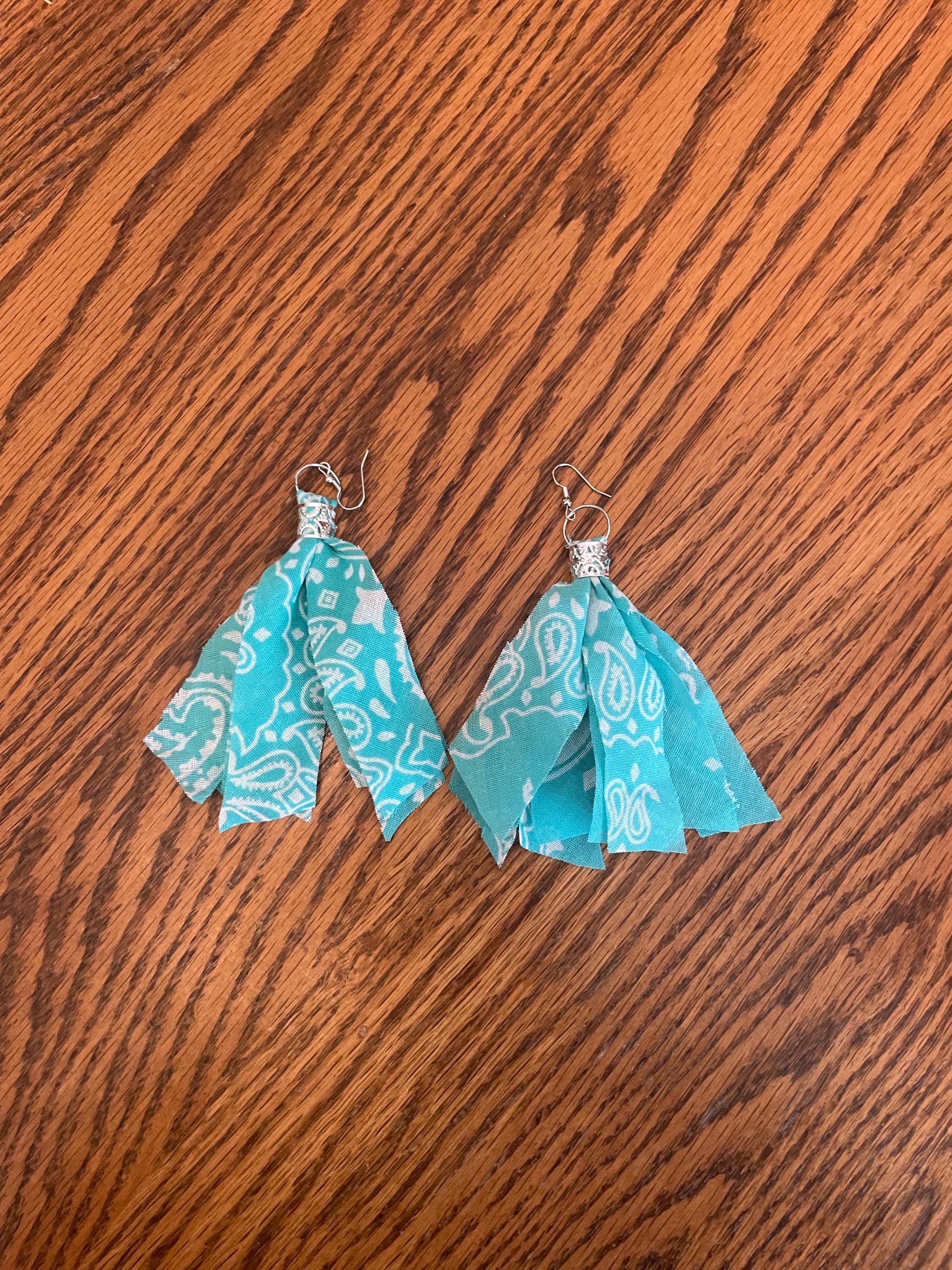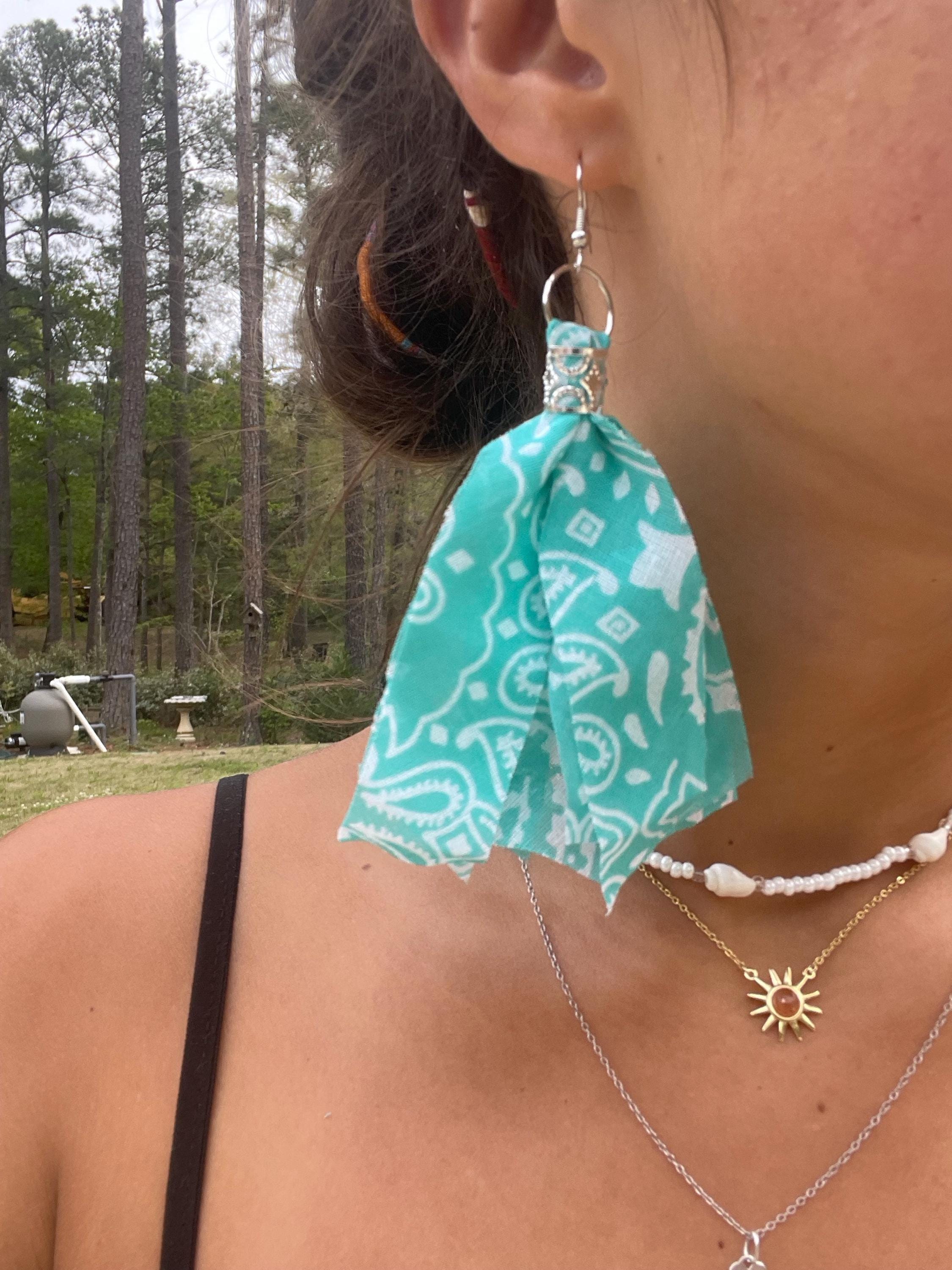 Boho Bandana Earrings, Western Cowgirl Jewelry, Country Concert Accessories, Rodeo Outfit, Festival Jewelry, Gift for Her, Turquoise, Teal