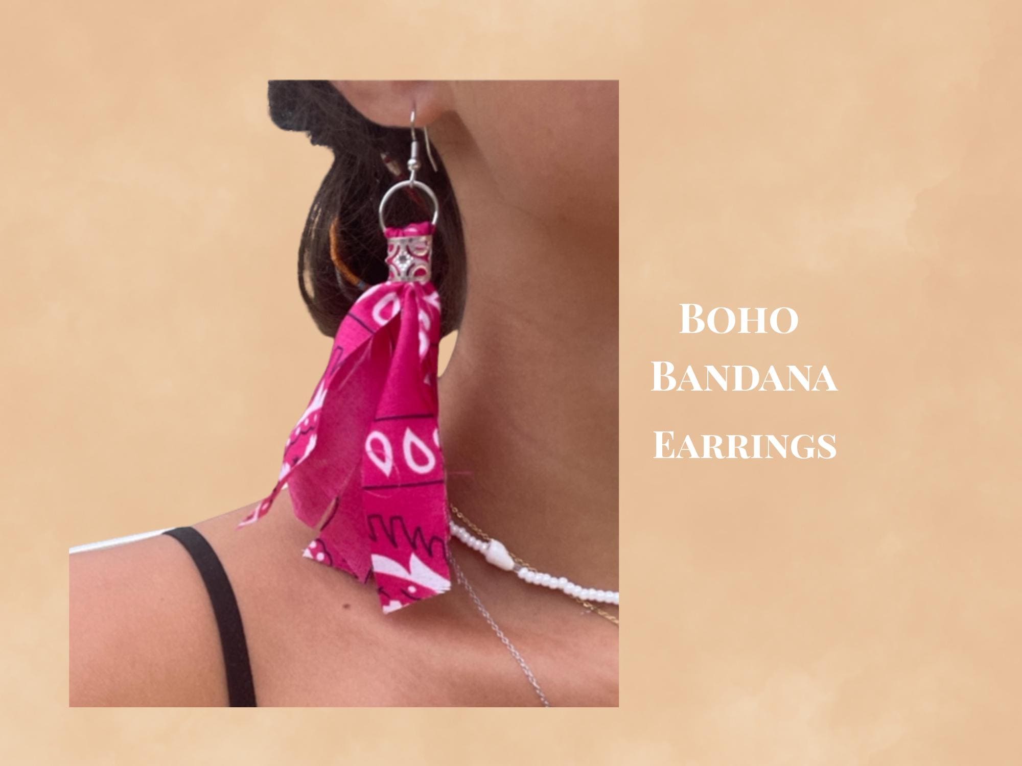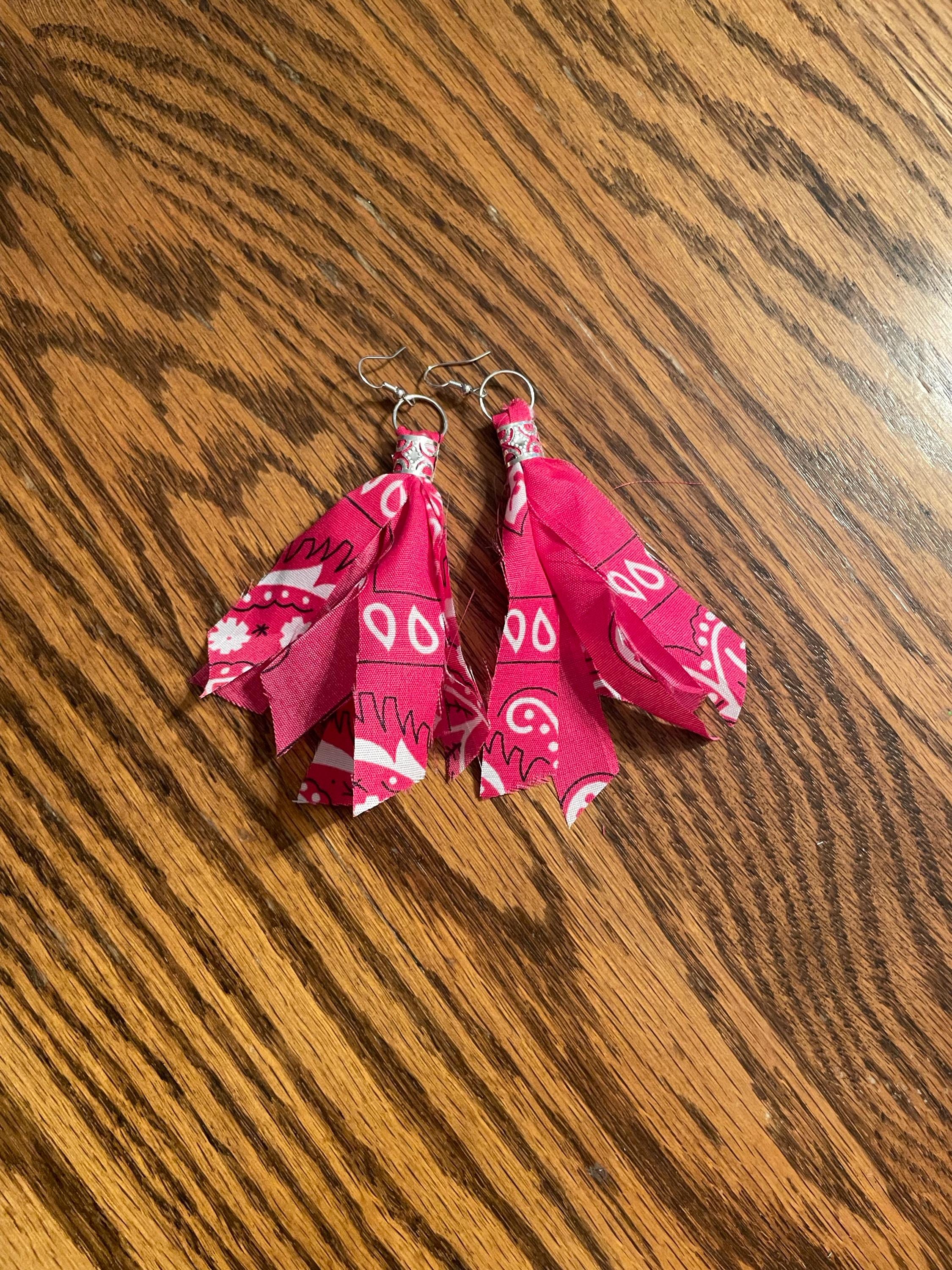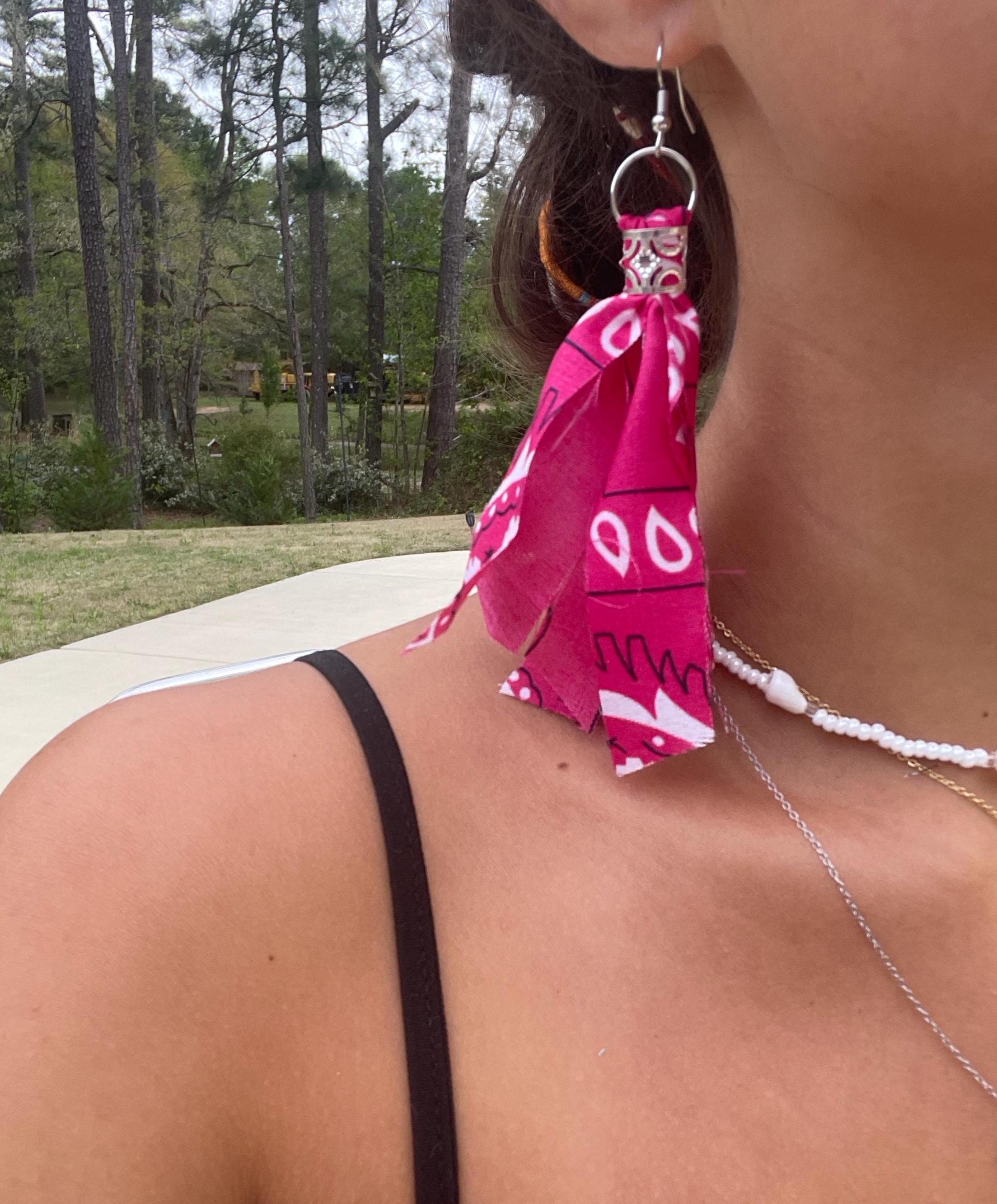 Boho Bandana Earrings, Western Cowgirl Jewelry, Country Concert Outfit, Rodeo Accessories, Festival, Gift for Her, Pink
