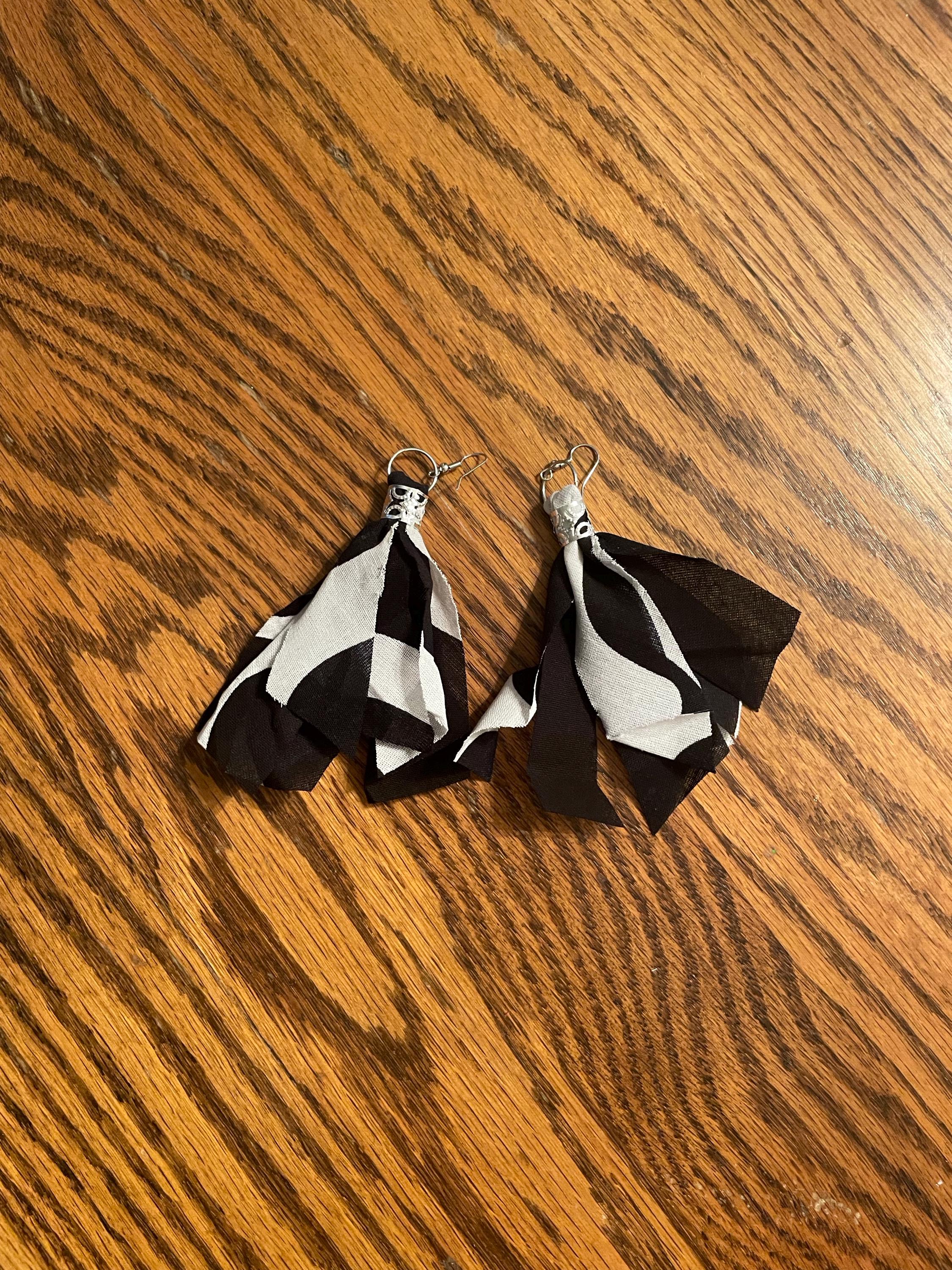 Boho Bandana Earrings, Western Cowgirl, Country Concert Outfit, Rodeo, Festival, Gift for Her, Black, White